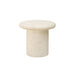 Sunset Wests Travertino Table is rendered in concrete, mimicking natural stone with travertine shades in contemporary pedestal silhouettes, featuring a smooth, rounded apron. Travertino can be nested for a layered look in any space.